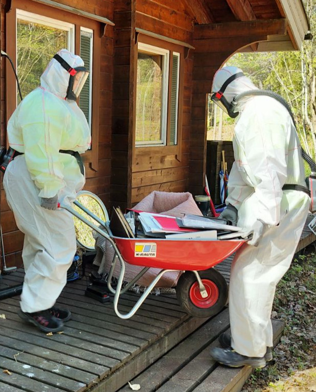Toteutamme irtaimiston evakuointia hallitusti, jotta homepöly ei leviä muihin tiloihin. Tavarat pakataan, kuljetetaan ja puhdistetaan asianmukaisin menetelmin. Ammattimainen käsittely on tärkeää, sillä virheellinen puhdistus voi levittää epäpuhtauksia ja aiheuttaa hajuhaittoja.